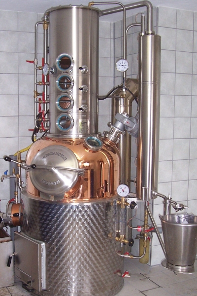 Im Jahr 2007 beschlossen wir, unsere alte Brennanlage nach 18 Jahren zu ersetzen. Unsere Wahl fiel auf eine Brennerei der Firma Kothe (Typ K-800), einem namhaften Hersteller von Destillationsanlagen, der bereits unsere alte Anlage gebaut hat.